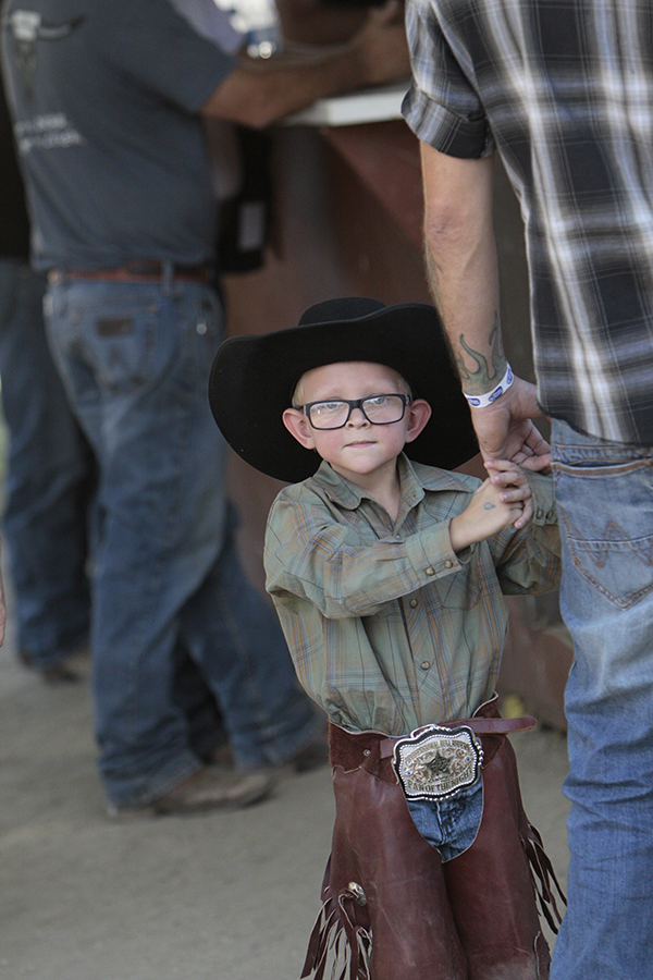 The Little Britches competition involves the parents who support and prepare the children who brave riding a running sheep and try to stay on the sheep for the short ride.