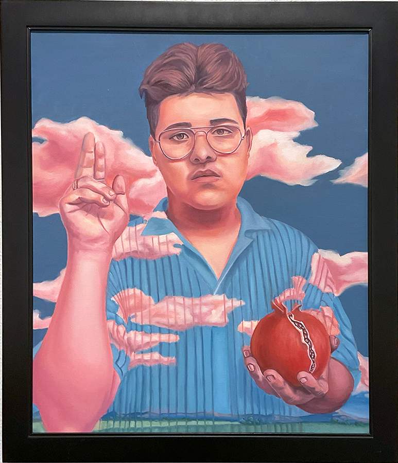 “Together, nopales and pomegranates serve as a tribute to the people who shaped me, the culture that grounds me, and the love I cultivate. For much of my life, I suppressed my identity and believed I was unworthy of love and incapable of coming out of the closet. I’ve learned to cut fruit and offer the same tenderness that I deprived myself of for 22 years of my life.” – Jose Soria